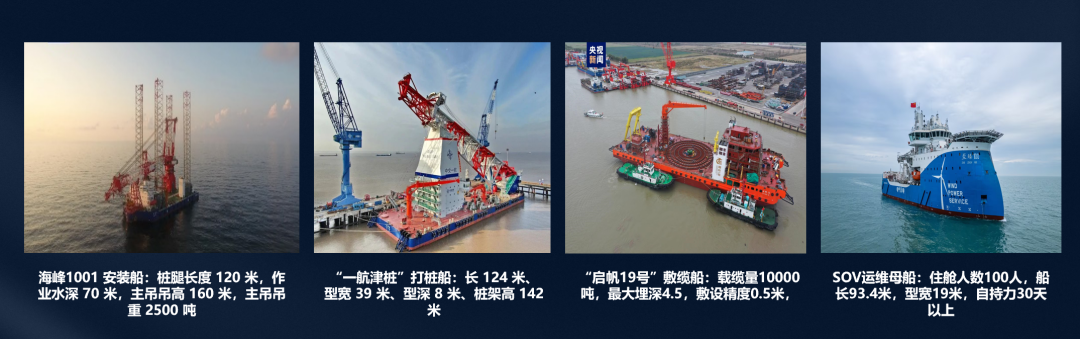 同時(shí),相對(duì)于2021年海上風(fēng)電施工平臺(tái)短缺的狀態(tài),近兩年我國海上風(fēng)電施工能力有了較大幅度提升,《2023年中國風(fēng)電行業(yè)深度報(bào)告》統(tǒng)計(jì),截止2023年底,國內(nèi)共有有海上風(fēng)電施工船舶74艘,其中64艘已經(jīng)投入運(yùn)營,10艘施工船還處于建設(shè)階段。另外,隨著海上風(fēng)電大型化、深遠(yuǎn)海發(fā)展進(jìn)程加快,大兆瓦的海上風(fēng)電施工平臺(tái)也加速下水交付。